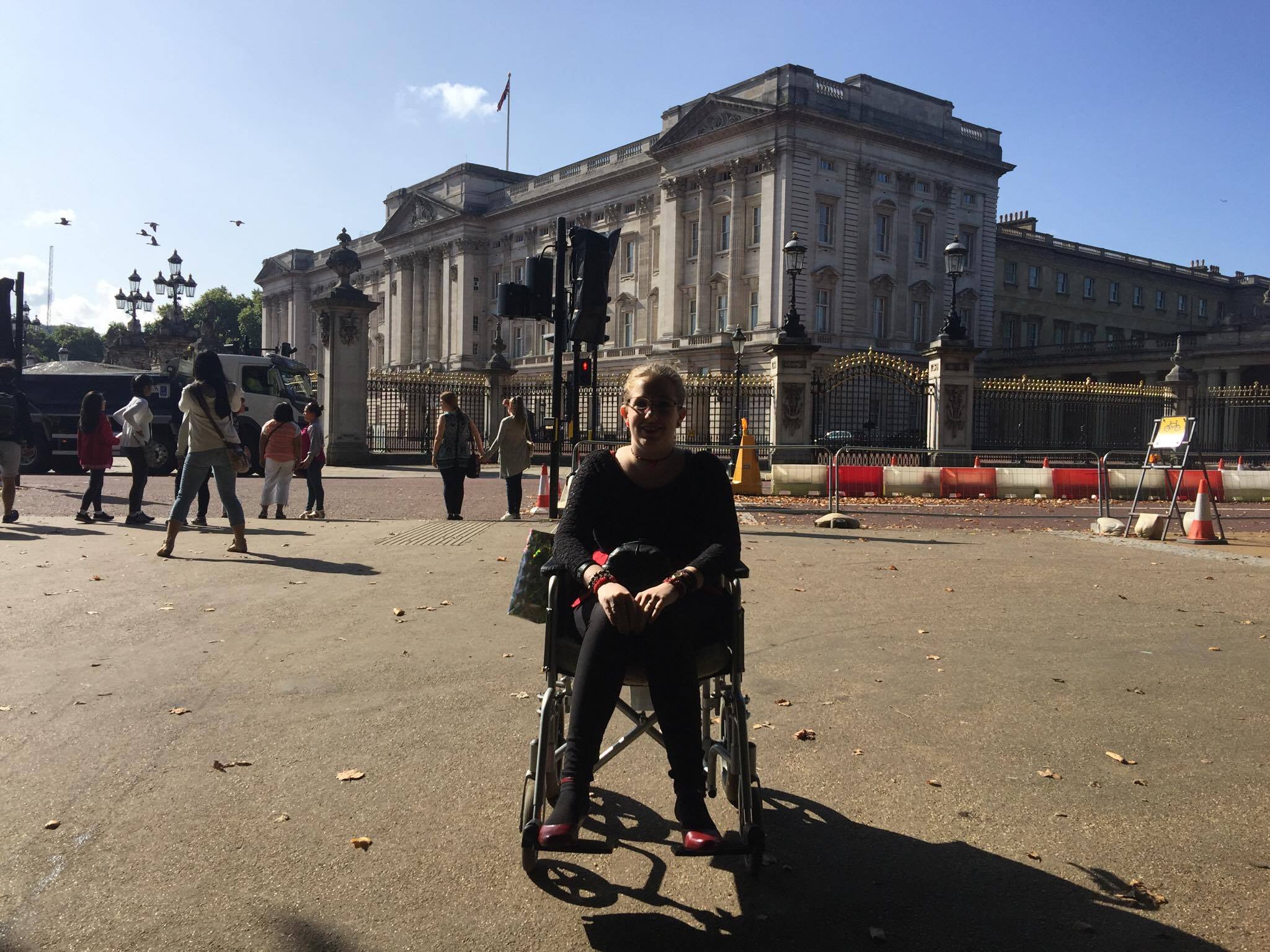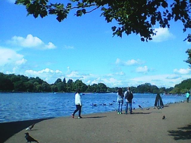 Once Jarred had snapped the obligatory photo of me in front of the palace we made our way through Hyde Park, along the edge of the Serpentine. The day was warm and soon we shed our coats to hang them off the back of the wheelchair. About half way along the Serpentine we spotted a heron wading through the water, slow and graceful as if it were royalty.